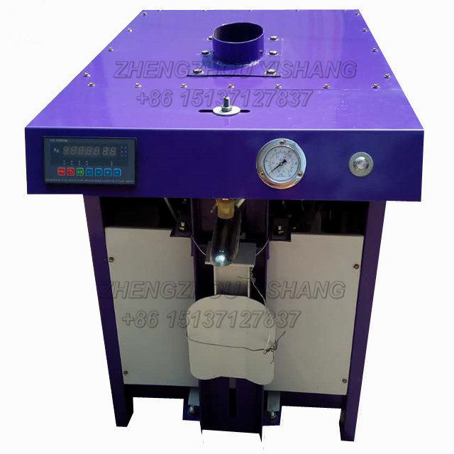 The speed of the motor is regulated stepless by the frequency converter while the flow rate of the material in the feeding tube is regulated by the airflow. The whole process is completed by the microcomputer. The specific method is that in the initial stage of material filling, the impeller running at high speed will feed the material into the filling mouth, and the thrust force formed and the compressed air in the filling tube will propel the material into the packaging bag quickly. When the material is filled to about 70% of the required weight, the motor starts to slow down. Until the required packaging weight is reached, the air pressure of the flow aid decreases gradually. At the same time, the section of the canning pipe is gradually reduced under the action of the cylinder, until the end of accurate weighing and complete closure.