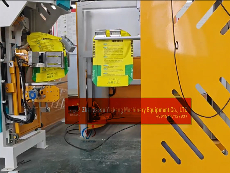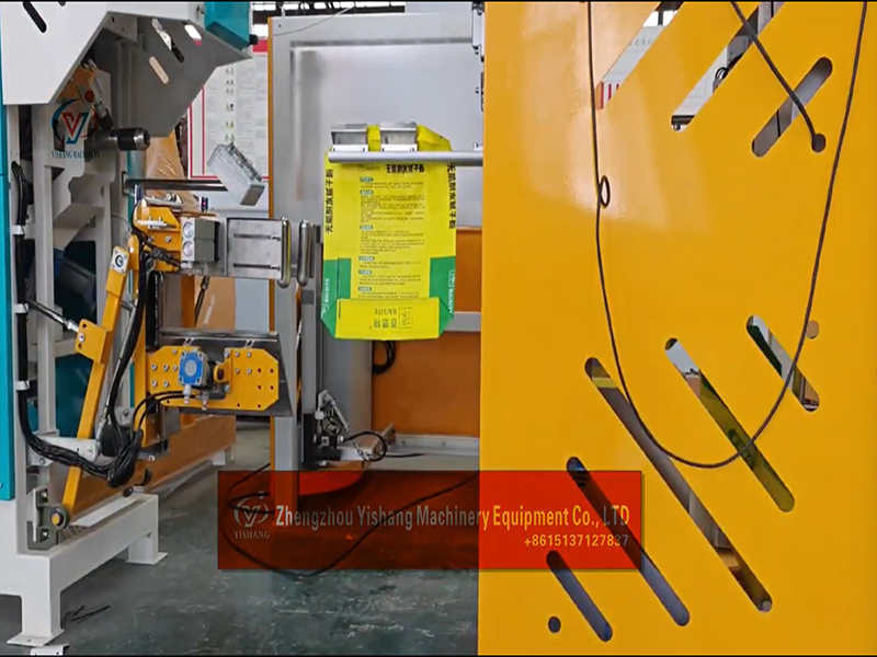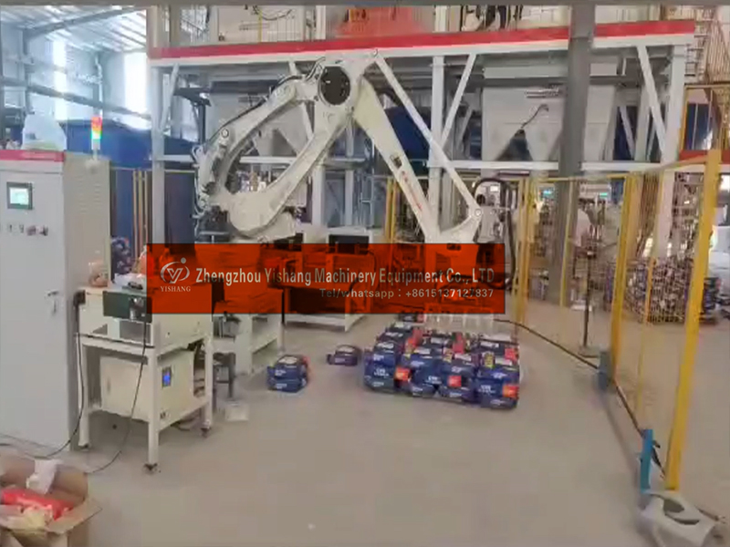 Valve mouth bag automatic sleeving bags packing machine and robot arm palletizer